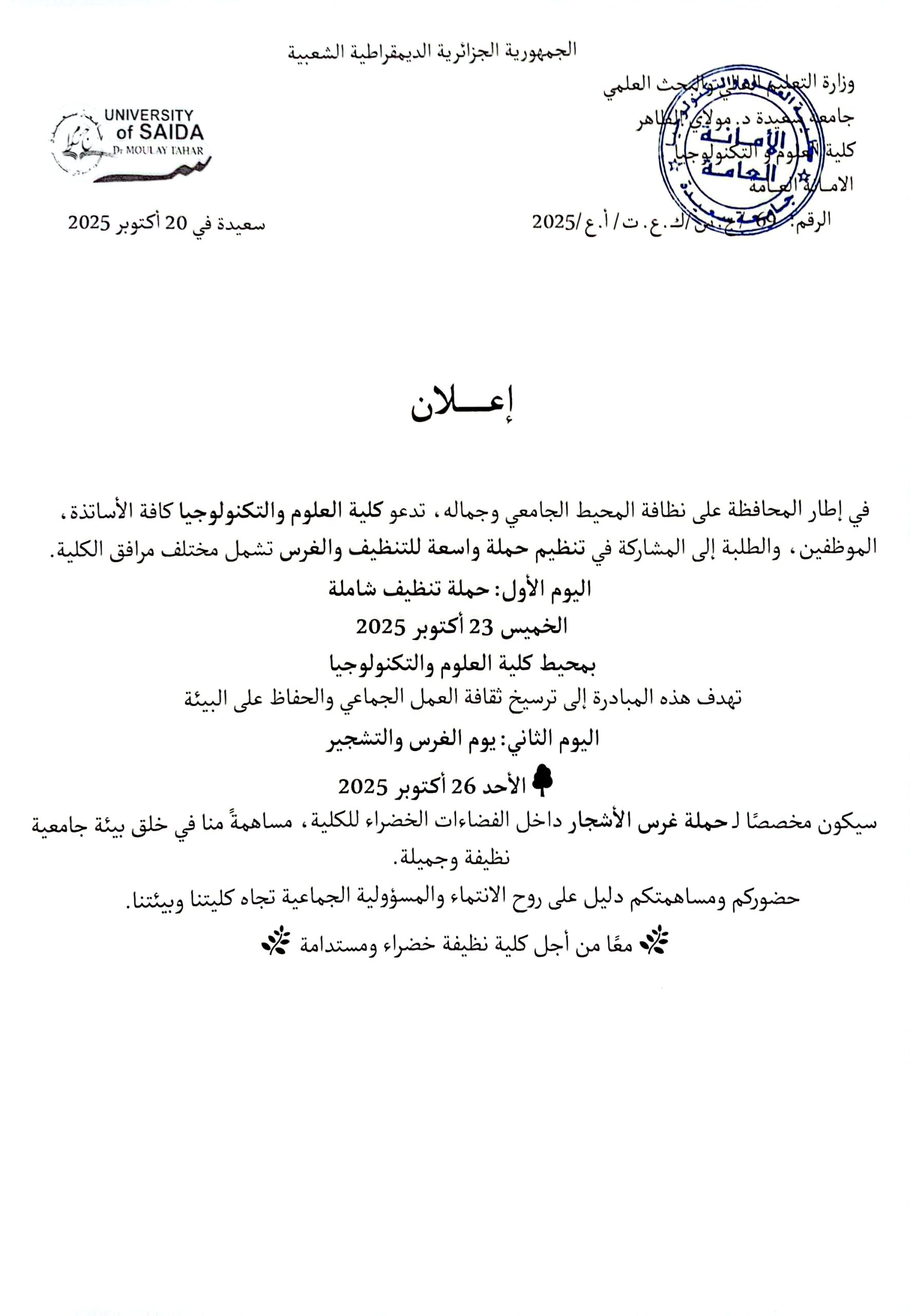 معا من اجل كلية نظيفة خضراء و مستدامة