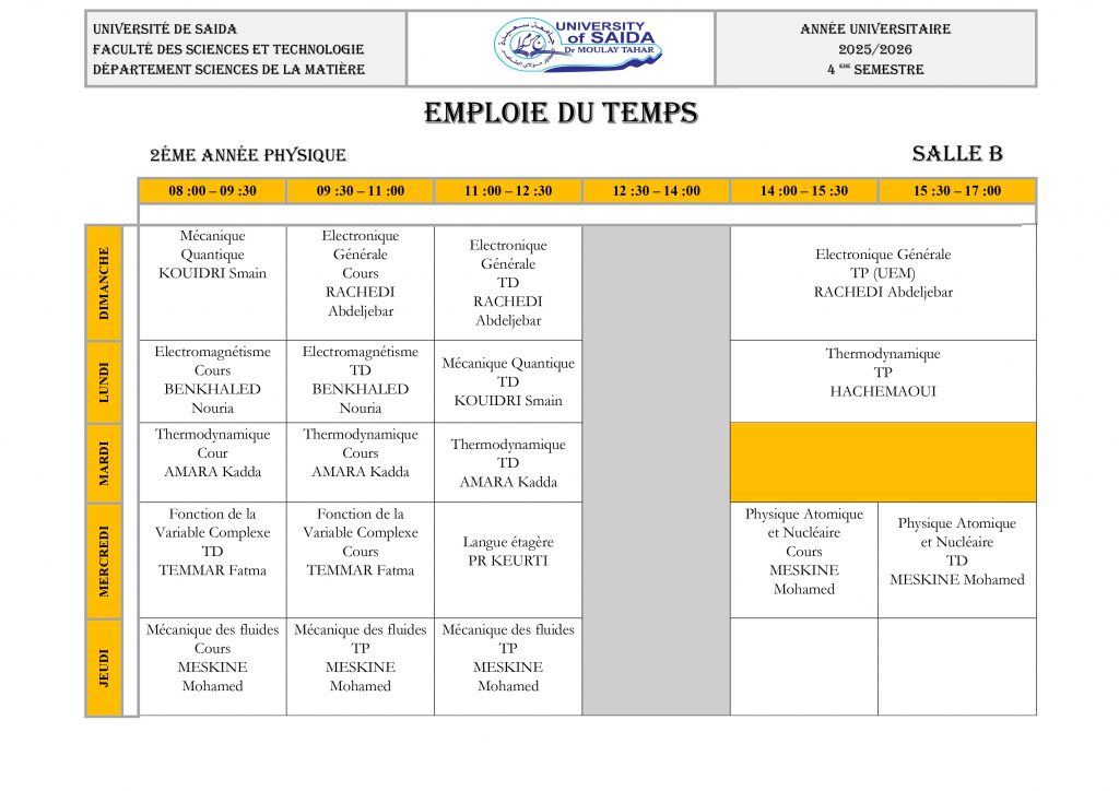 Emploi du Temps