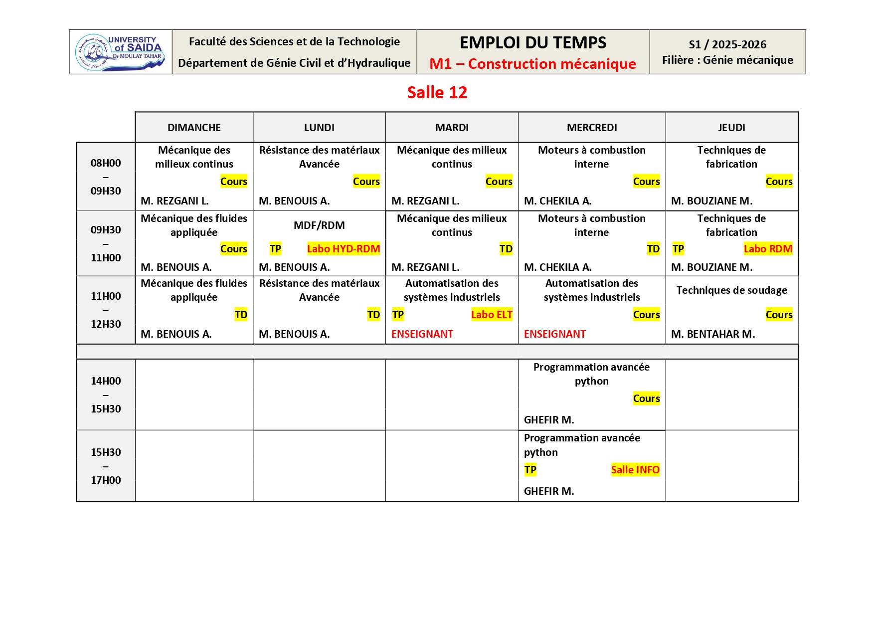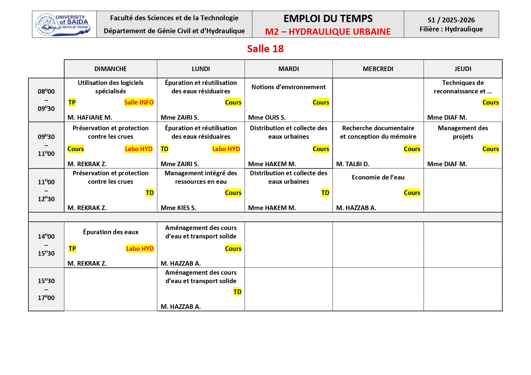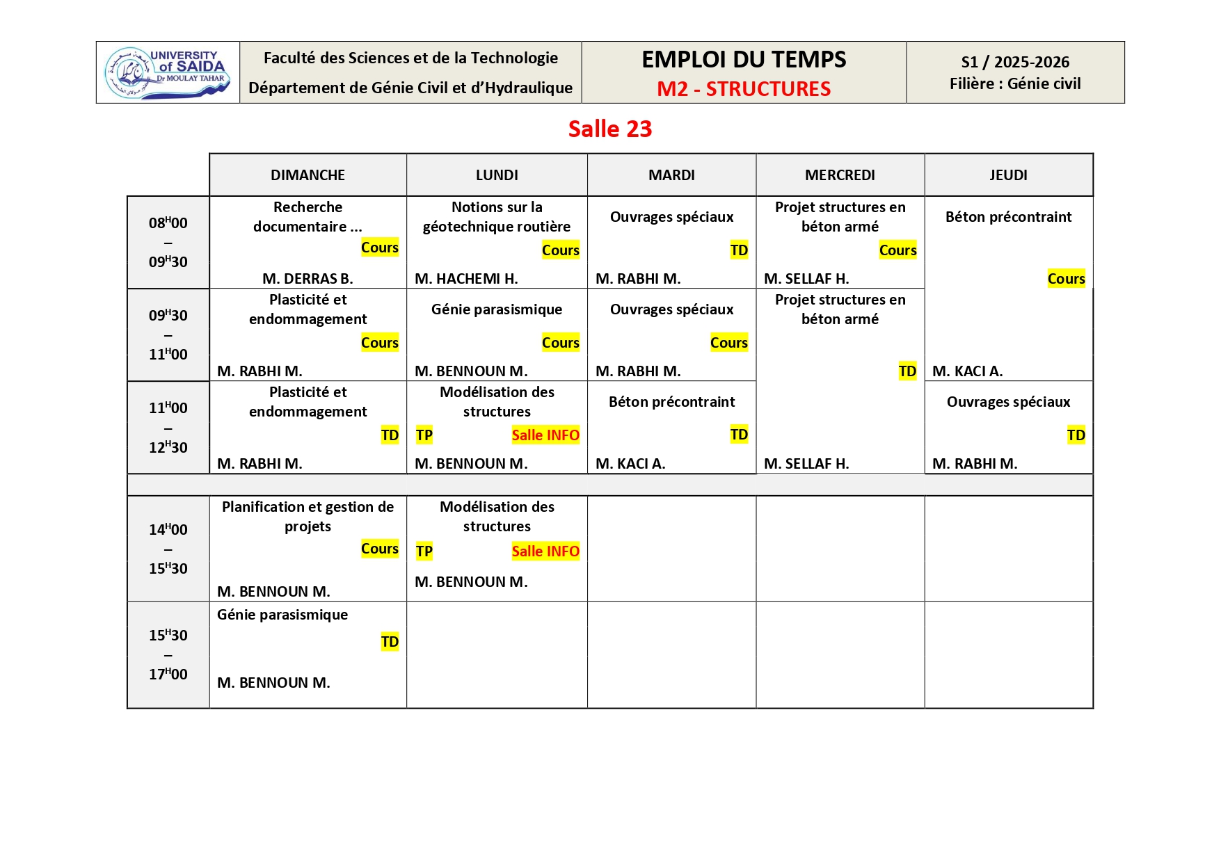 Emploi du Temps