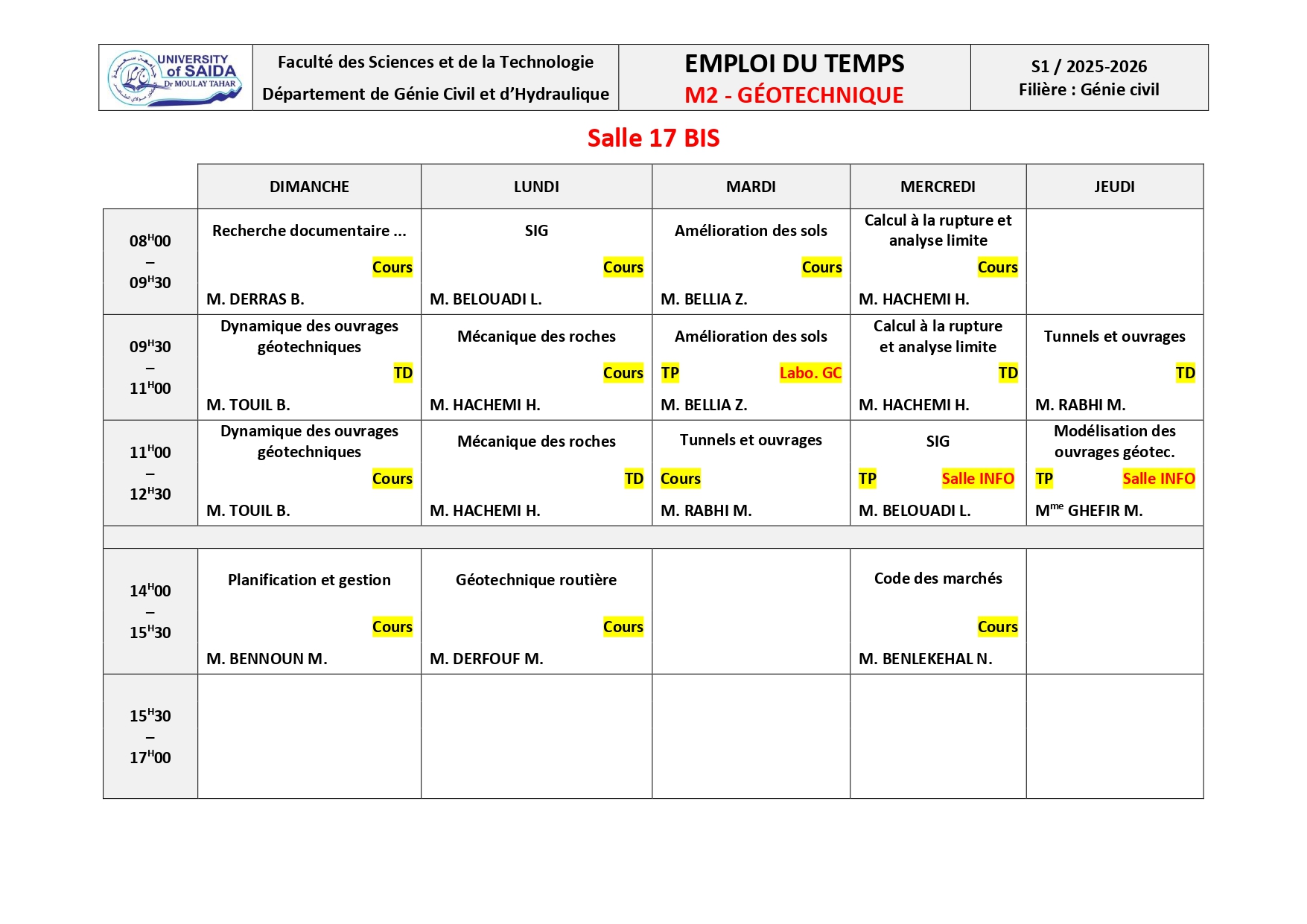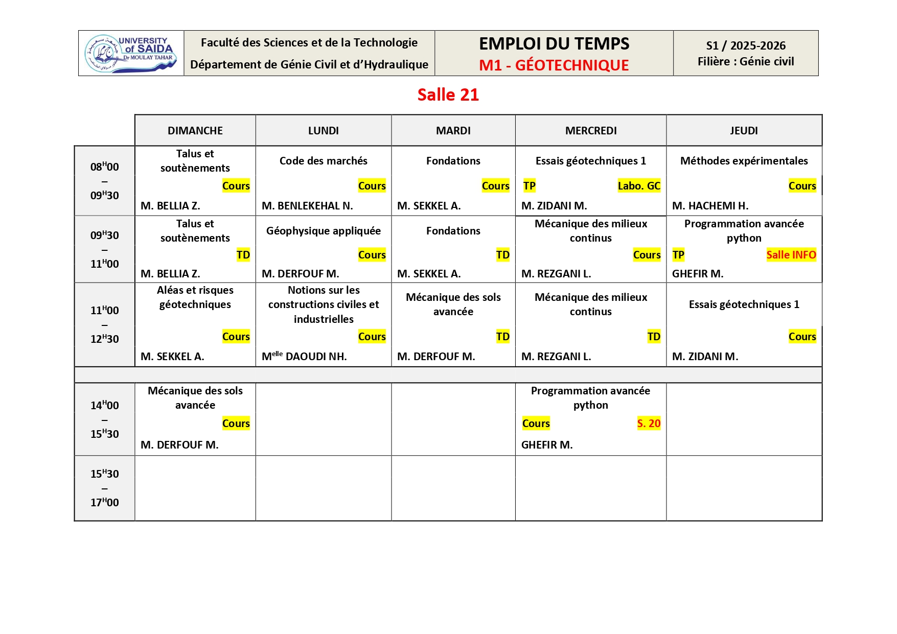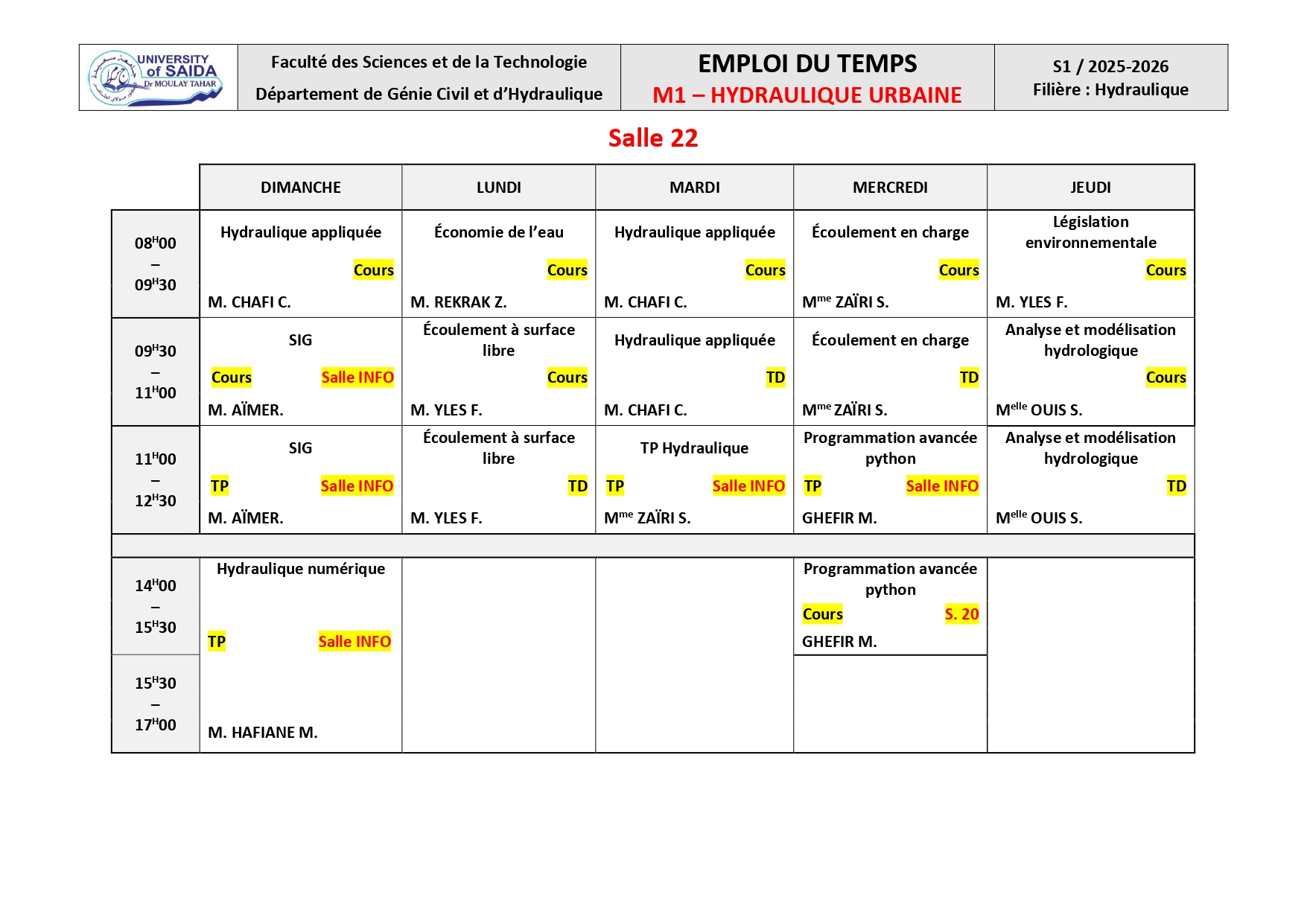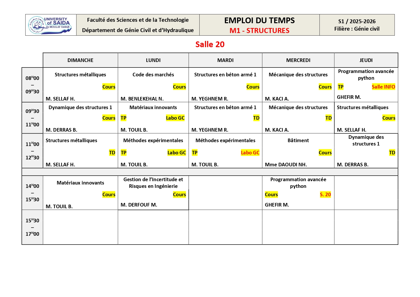 Emploi du Temps