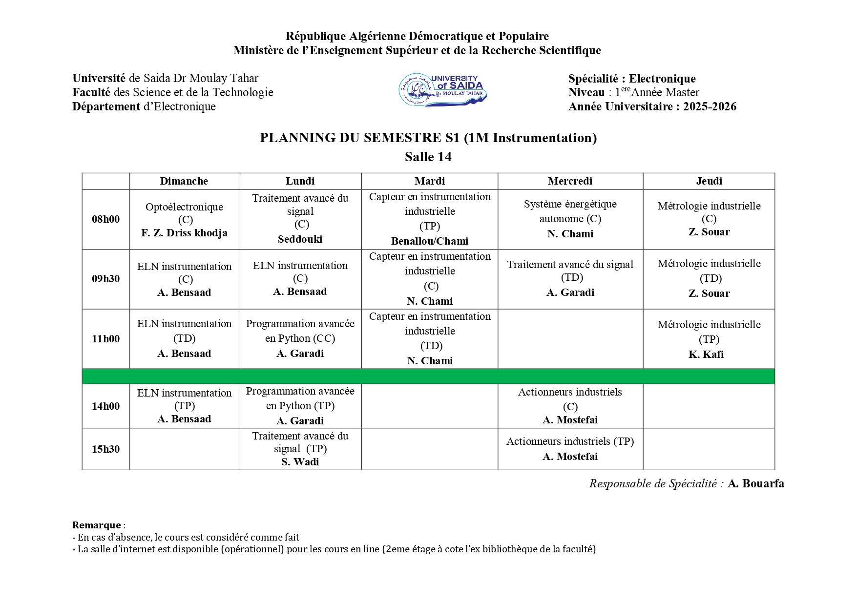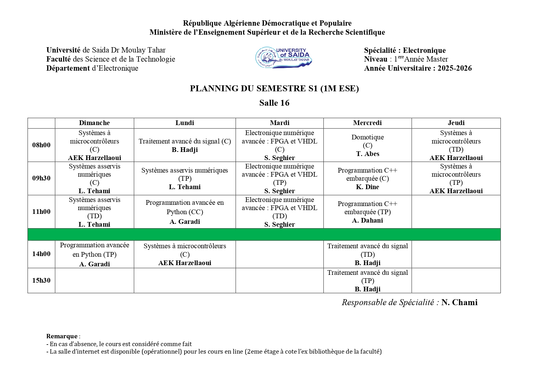 Emploi du Temps