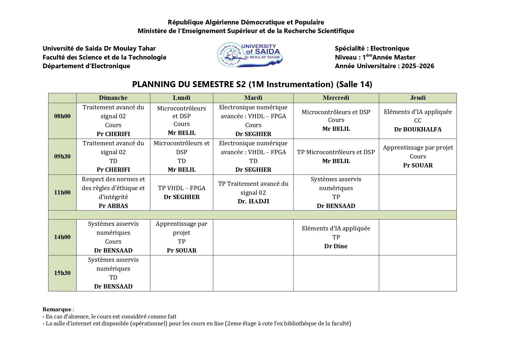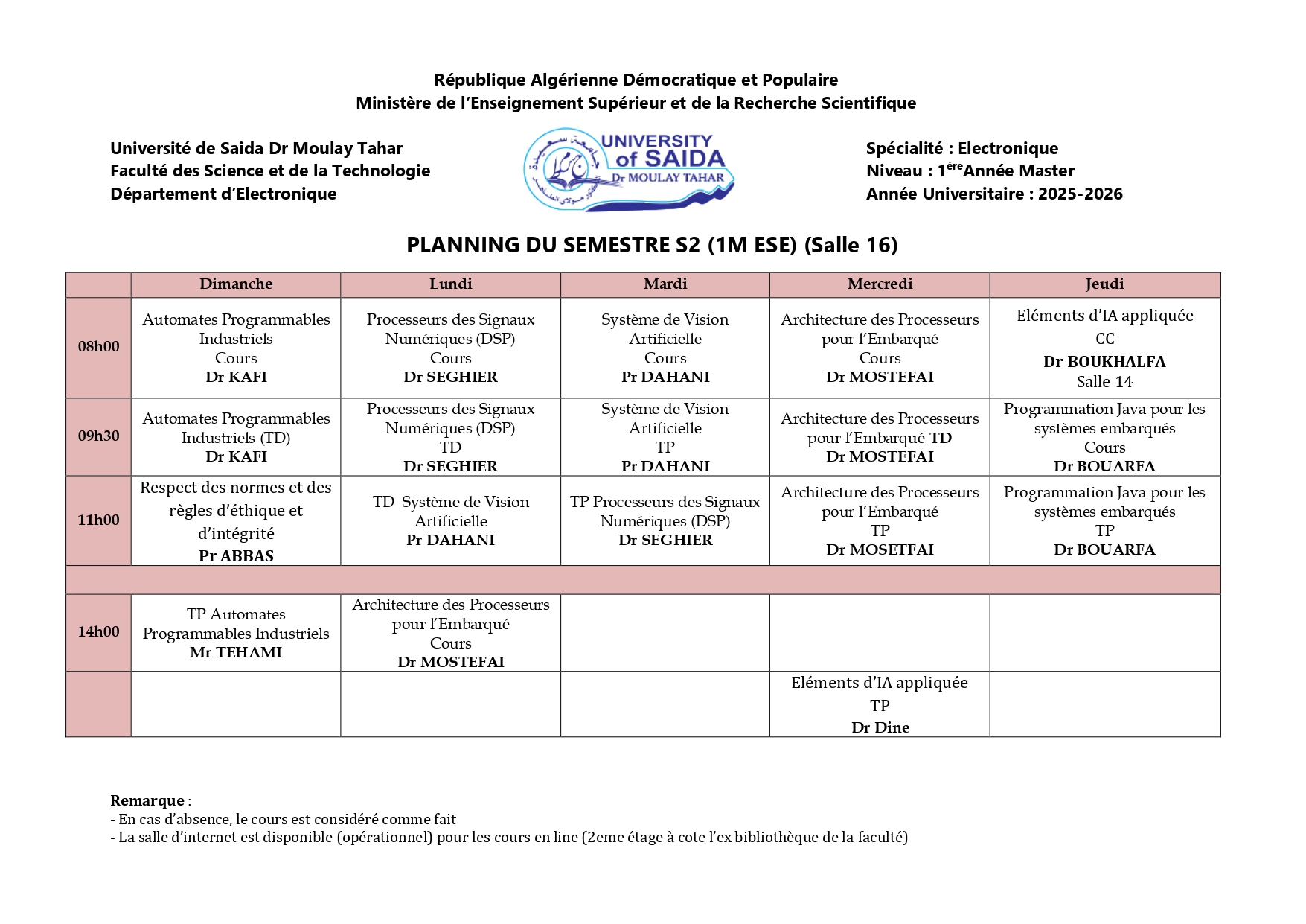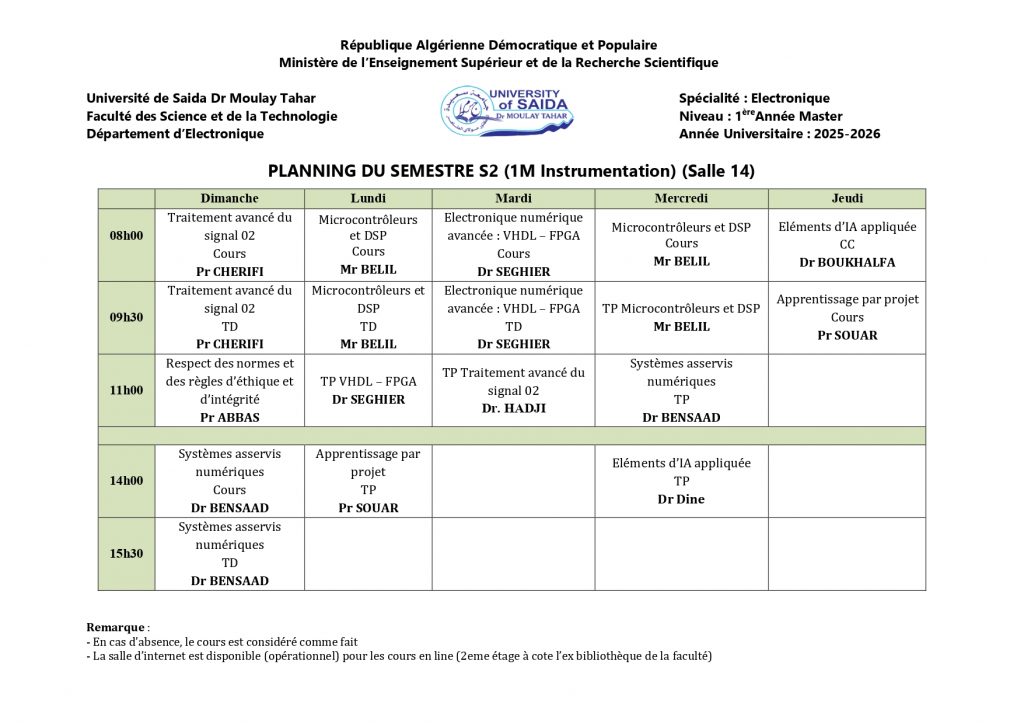 EMPLOIS DU TEMPS S2